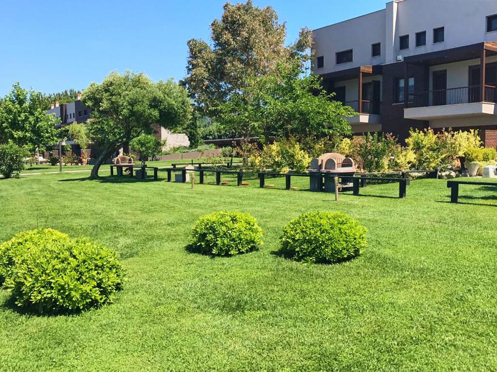 Les 11 unités spacieuses en décor et mobilier élégant et contemporain, consistent en 2 chambres à coucher, grand salon meublé, cuisine entièrement équipée avec réfrigérateur/congélateur, machine à laver la vaisselle et machine à laver, fer et planche à repasser, salle de bain (douche), sèche-cheveuix, articles de toilette, peignoir et chaussons, climatisation, TV satellite au salon et dans la chambre à coucher, lecteur DVD, coin repas meublé. Connexion wi-fi gratuit. Grande véranda ensoleillée.