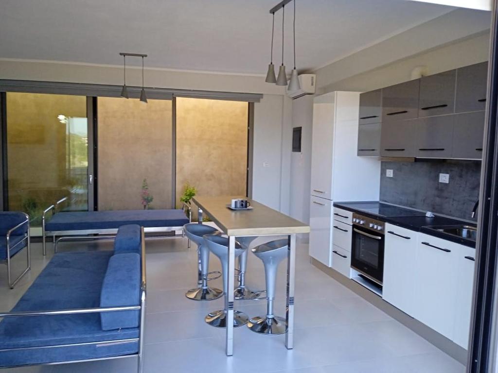 L'appartement comprend une chambre, une salle de bains, du linge de lit, des serviettes, une télévision à écran plat avec des services de streaming, un coin repas, une cuisine entièrement équipée avec un four, des plaques de caisson, un refrigirateur, un lave vaisselle et un lave linge. Vous trouverez aussi une terrasse avec vue sur la mer.