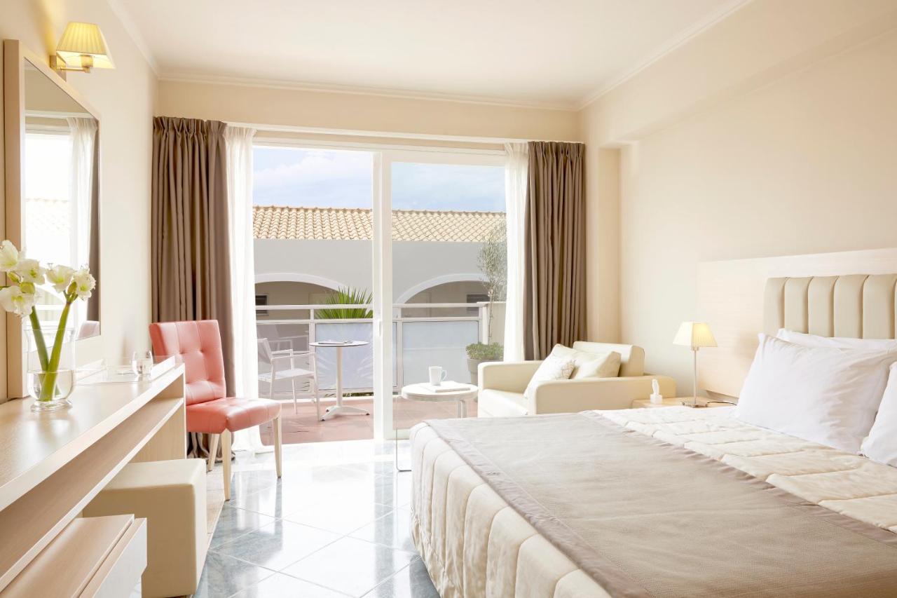 Offrant une vue sur la mer ou la montagne, les chambres du Mayor Pelekas sont décorées dans un style apaisant dans des tons doux.